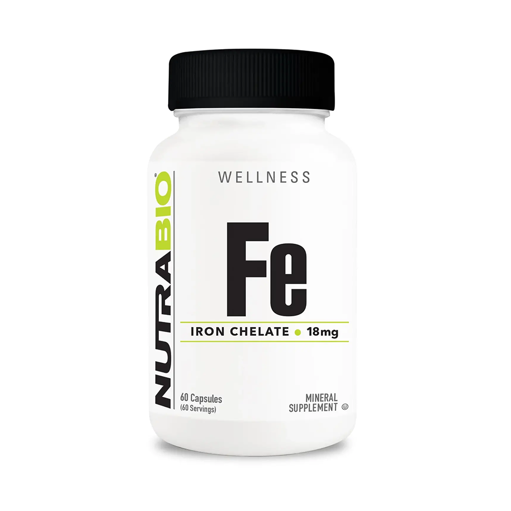 Boost your iron levels effectively with NutraBio's Advanced Iron Chelate featuring Ferrochel®. Our formula provides 18 mg of highly absorbable iron per serving, promoting red blood cell formation and overall vitality, all while being gentle on your stomach.