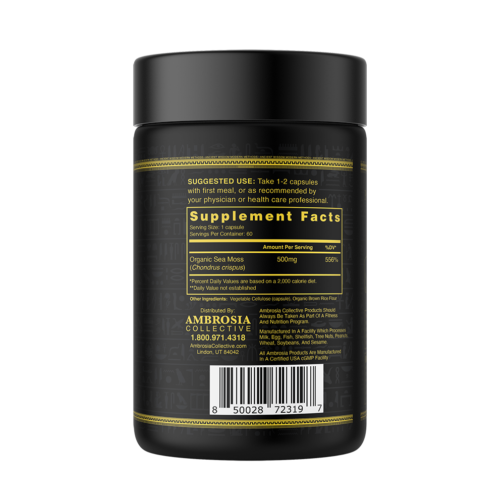 INTRODUCING AMBROSIA SEA MOSS, a powerful and pure oceanic superfood. Sea Moss contains one ingredient, Organic Sea Moss, a type of red algae commonly known as Irish Moss. Sea Moss has been used by humans for hundreds of years because of its amazing health benefits.