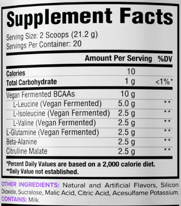 We use the most effective, scientifically-established ratio of BCAAs because we know it’s the difference between your first mile and your last. We include clinically-verified servings of beta-alanine, citrulline malate, and glutamine because we know your last rep depends on it.