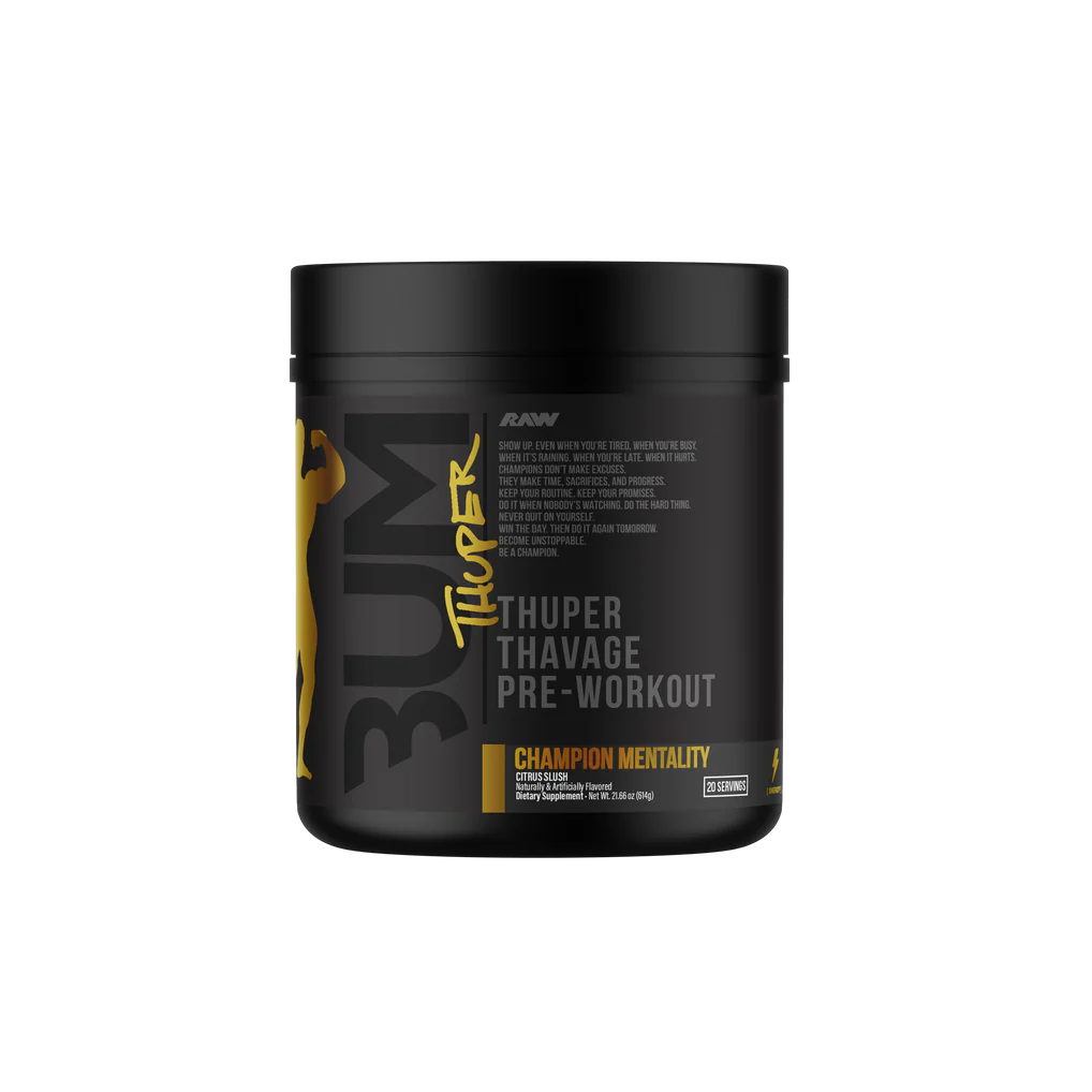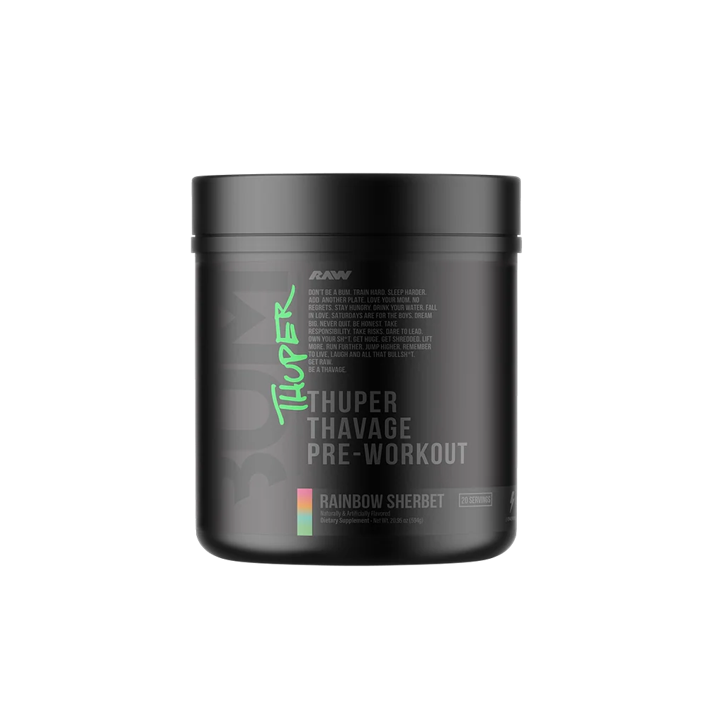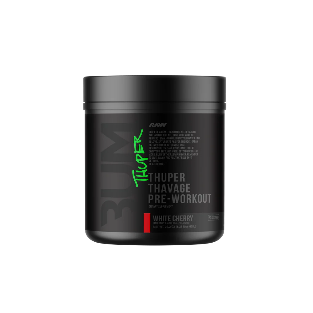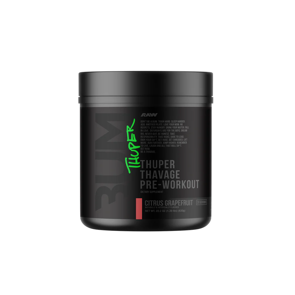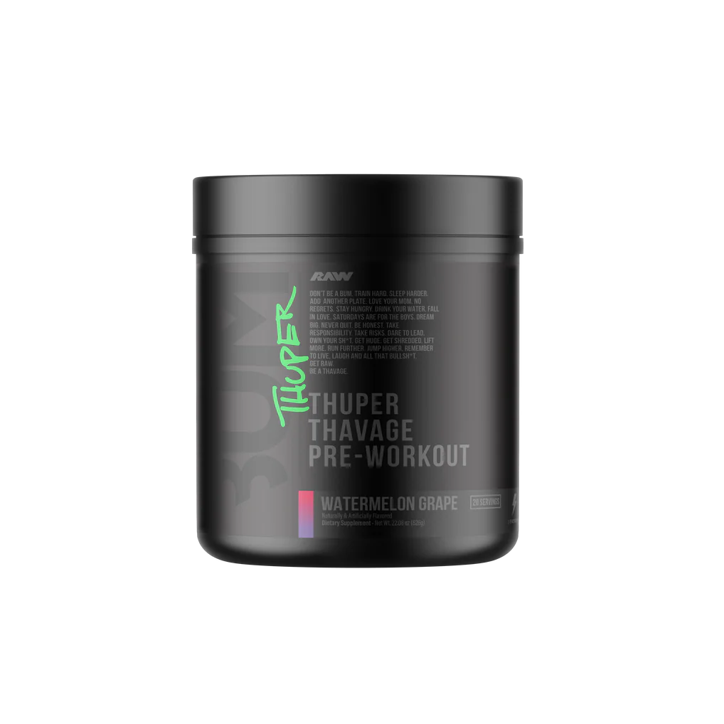 Thuper Thavage is the most aggressive Thavage formula ever created, built for serious lifters who demand maximum intensity every time they step under the bar. Designed by 6x Mr. Olympia Chris Bumstead, this high-stim pre-workout delivers full clinical doses to support strength, endurance, and massive pumps. Each scoop packs 6,400mg of Beta Alanine, 6,000mg of L-Citrulline, 5,000mg of Creatine Monohydrate, and 400mg of Caffeine to ignite explosive energy and relentless drive. This isnât made for casual sessionsâitâs engineered for heavy lifts, tough volume, and athletes who refuse to train average. If you want hard-hitting energy, laser focus, and performance that matches your ambition, Thuper Thavage is your ultimate training fuel.