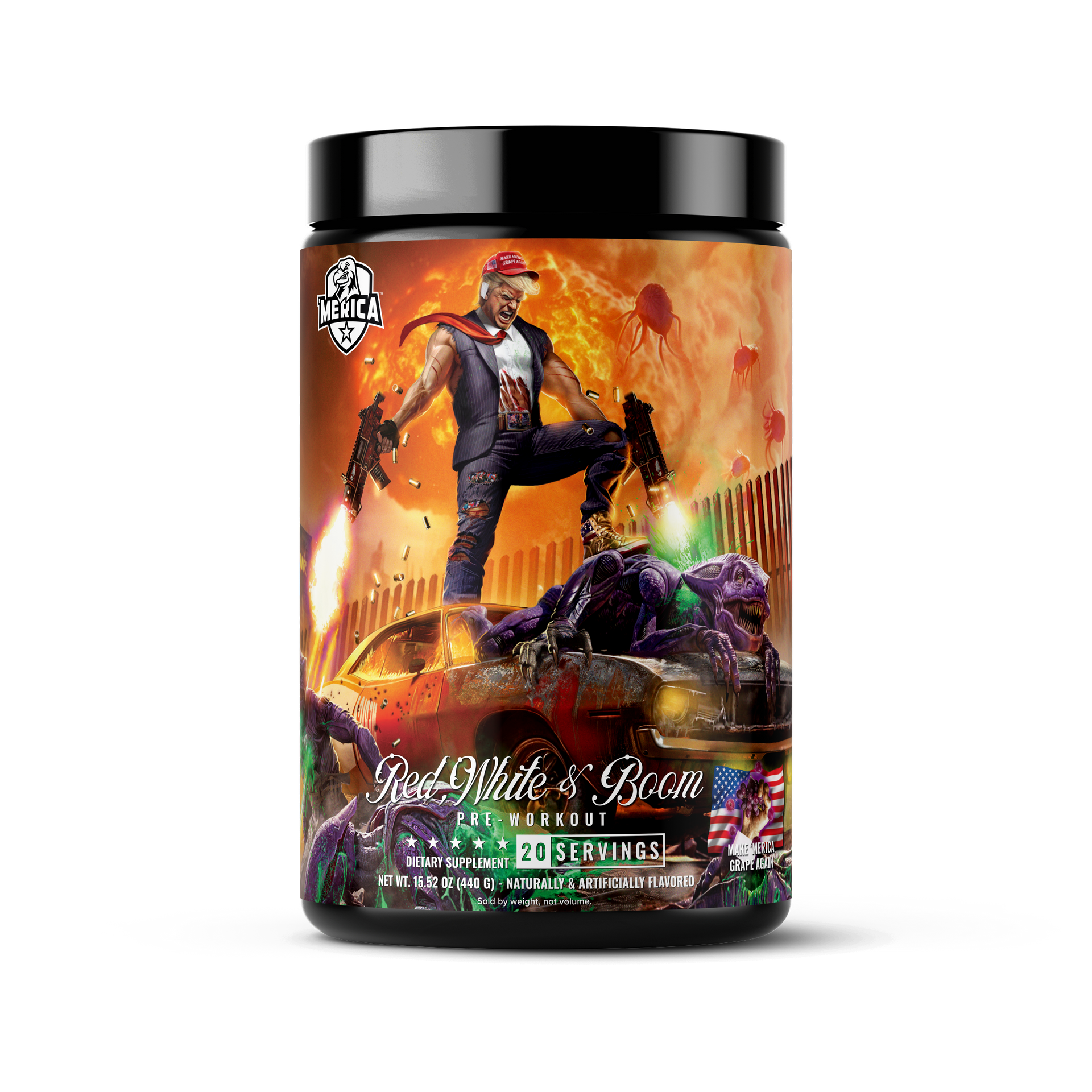 We love the smell of Napalm in the morning. But not the flesh-melting, incinerate-everything kind. We like the delicious, so-good-it’ll-make-you-fist-fight-your-aunt kind. The targeted-lipolysis-and-energy-production-formula kind, stuffed into America’s finest pre-workout powdered juju with a side of karate chopping you in the neck kind. Red, White & BOOM Napalm Edition is like putting firecrackers, a fried turkey, a stereo system blasting the Star-Spangled Banner, reality TV, and a gallon of cola into a barrel and lighting it on fire. Yeah, it’s that good.