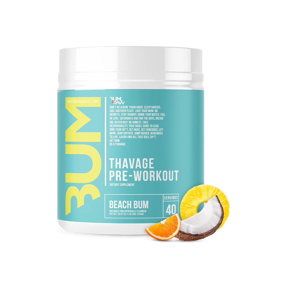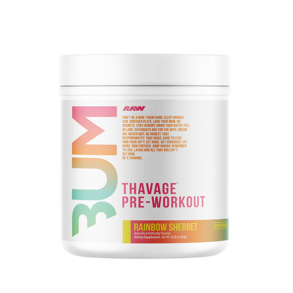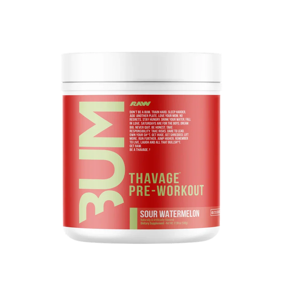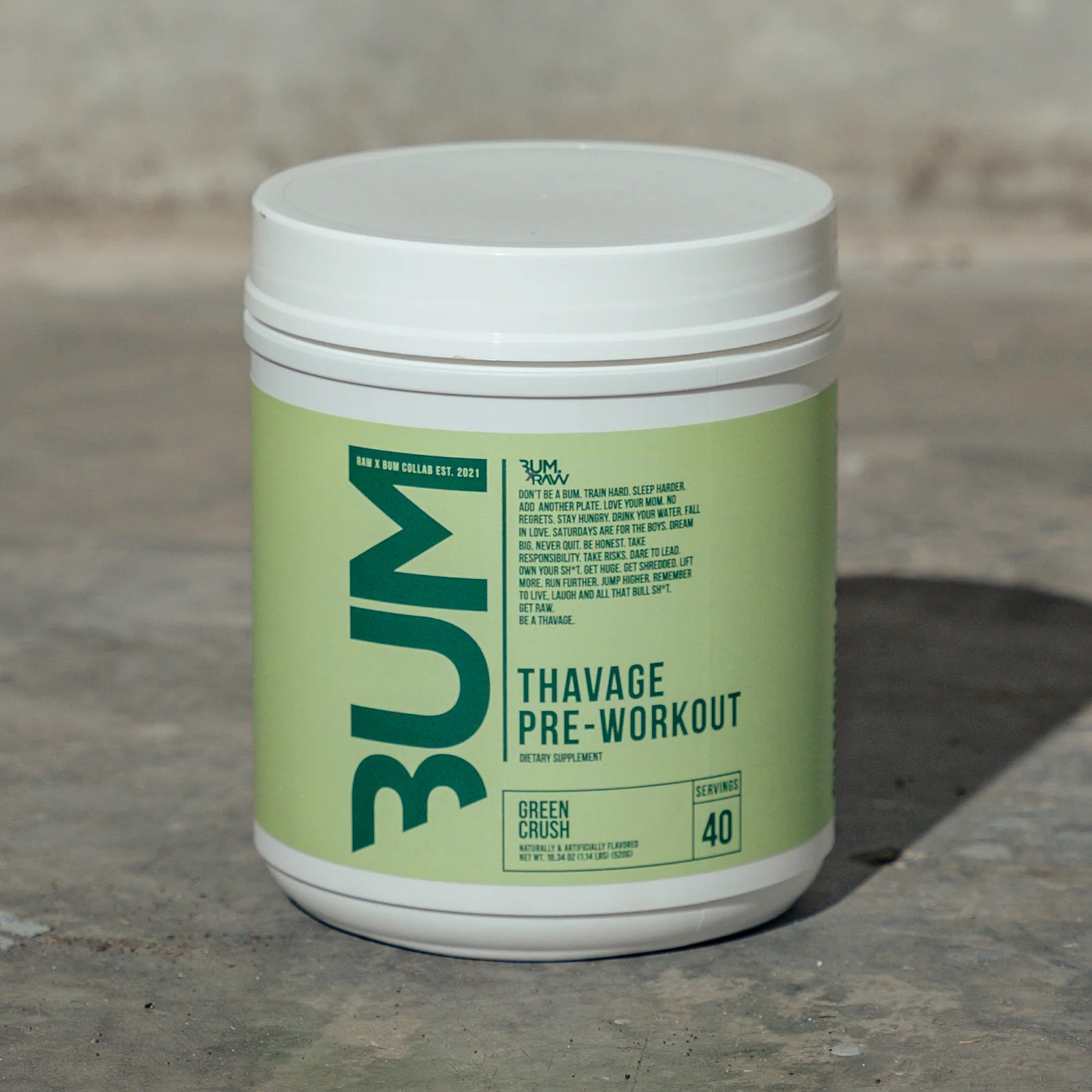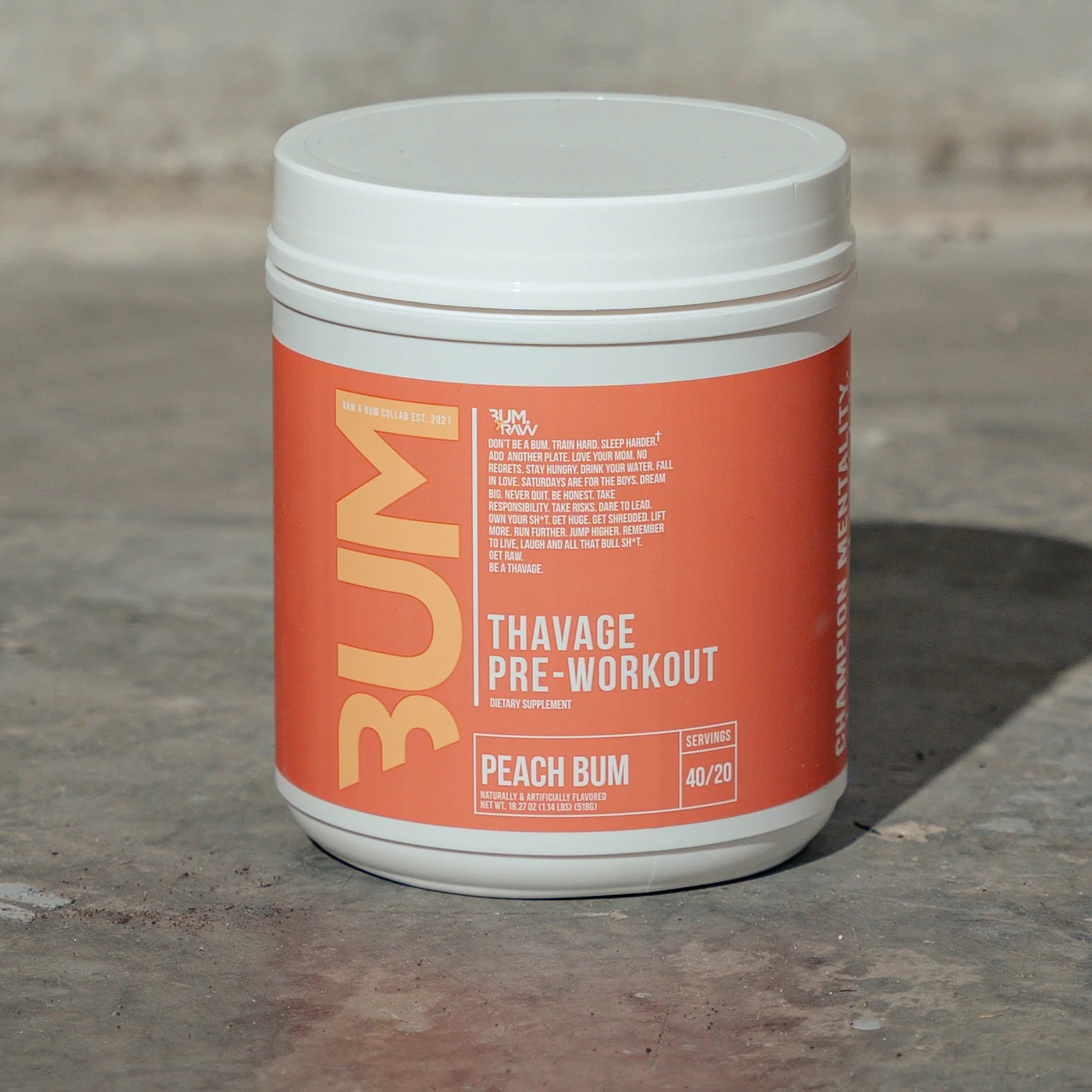Thavage Pre is not your run-of-the-mill pre-workout. Designed by thavages for thavages, this pre-workout for strength and energy delivers explosive power with every scoop. One serving is all it takes to flip the switch as you unlock a new level of performance. From superhuman strength to undaunted endurance, this muscle endurance pre-workout is your all-in-one solution. Six-time Mr. Olympia Chris Bumstead personally designed this fully loaded pre-training formula to help you build a legacy of your own.