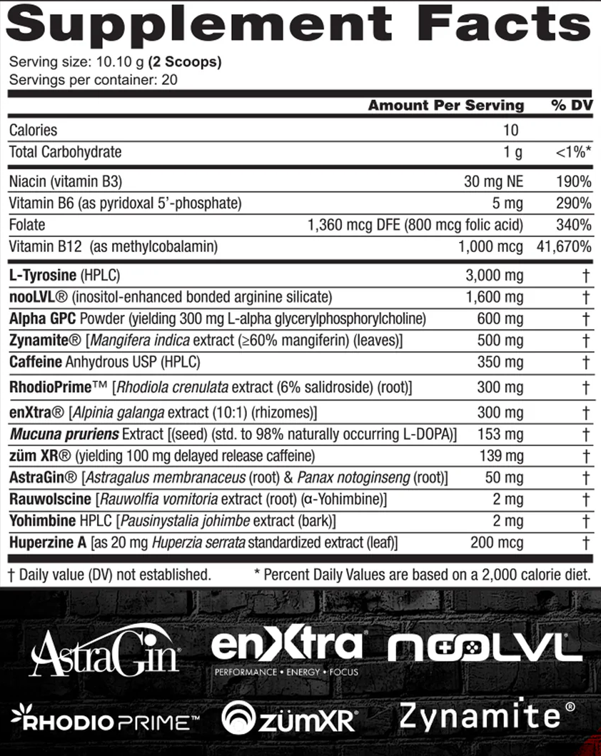 Peak Performance Formula: A blend of high-stimulants and nootropics meticulously dosed to maximize your workout potential without compromise.*
