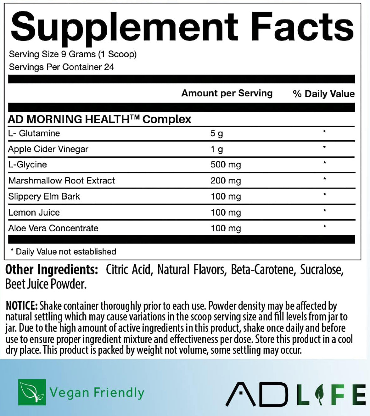Good Mornin is a unique blend of powerful ingredients that work together to support gut health, cleanse the digestive tract, and improve overall digestion. With key ingredients like apple cider vinegar, lemon juice, l-glutamine, and aloe vera juice, Good Mornin is the perfect way to start your day and set yourself up for success.