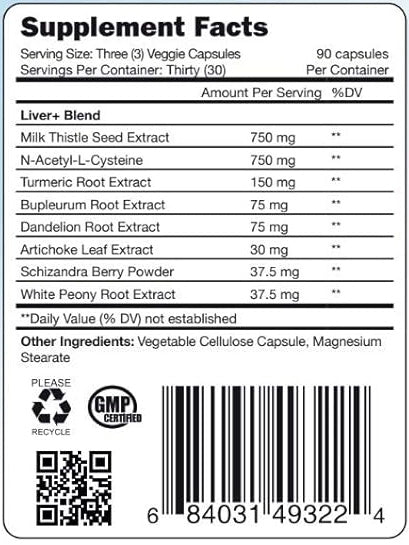 Contains Milk Thistle Seed, Turmeric Root, Dandelion Root and N-Acetyl-L-Cysteine.