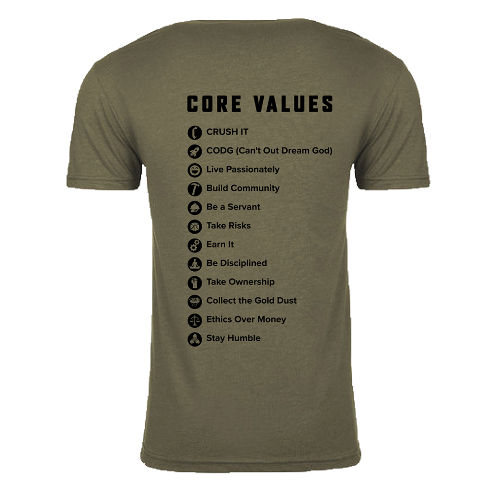 Awesome quality and fit. The Core Values are the code to live by. I've worn this shirt twice and gotten compliments from random people both times who have never heard of Core or the Nutrition Corners. They just like the Core Values.