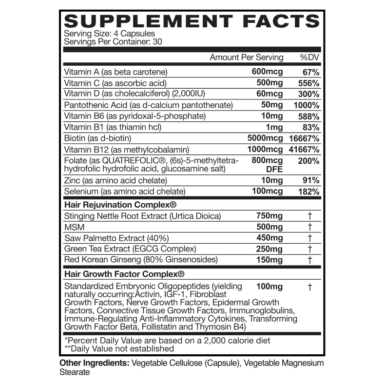 Vitamin Mineral Complex: Provides foundational support to combat hair loss and promote healthy hair growth.