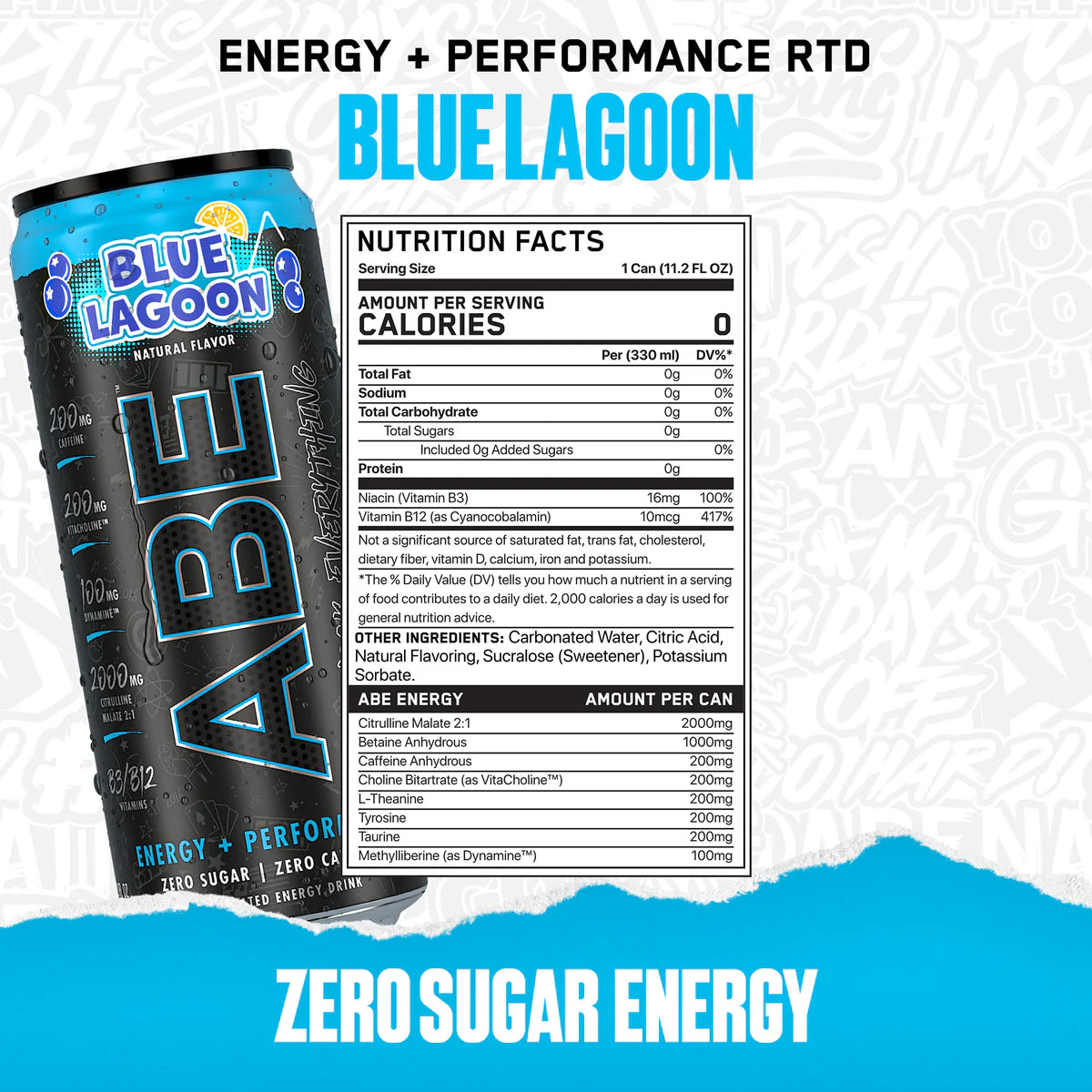 Introducing the new ABE (All Black Everything) Carbonated Beverage, with Zero Sugar, 200mg Caffeine, Citrulline, Dynamine, Vitacholine, and Essential B-Vitamins. Need that extra kick of energy in the gym or to boost your day? This ultimate Energy & Performance drink will take you to the next level in whatever you're doing.