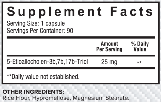 5-Etioallocholen-3b,7b,17b-triol: More commonly known as androstenetriol, 5-etioallocholen-3 beta-7 beta-17beta-triol is a metabolite of the ubiquitous endogenous steroid, dehydroepiandrosterone (DHEA). DHEA is one of the most abundant endogenous steroids in the human body, playing a critical role in a number of bodily functions. These functions include, though are not limited to, serving as an intermediate (a middle piece) in the synthesis of sex steroids such as testosterone and estrogen, up-regulating (increasing) immune response and countering the immunosuppressive actions of corticosteroids, and maybe the most impressive, directly and strongly suppressing the release of cortisol itself!