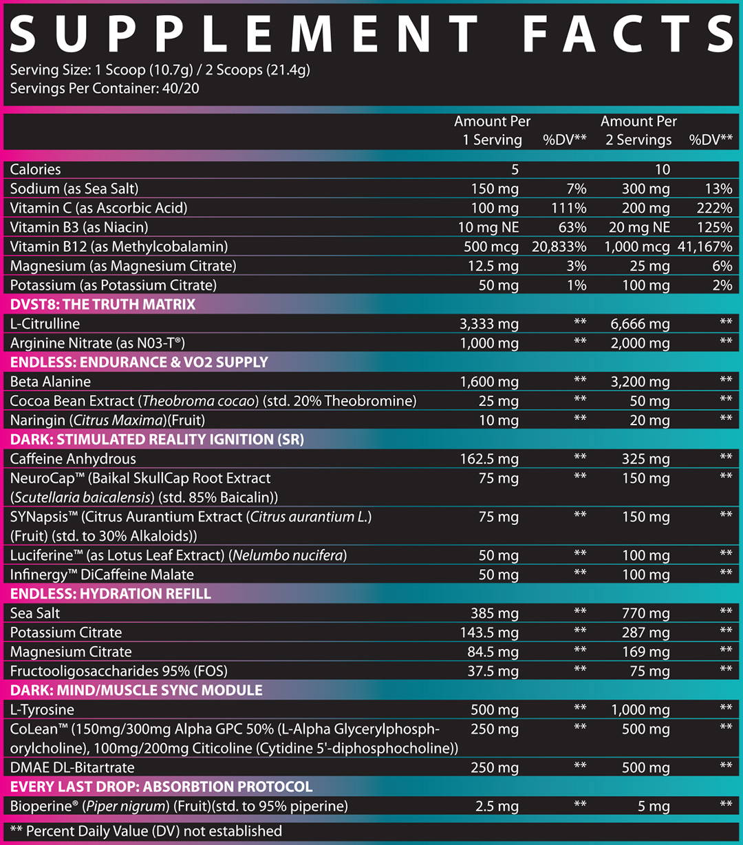 Introducing DVST8 Dark, fresh from the labs at Inspired Nutraceuticals and ready to power your workouts into a new spiritual dimension.