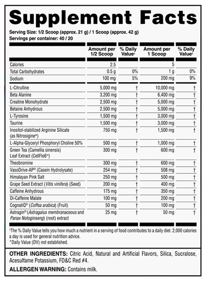 That is until this commanding pre-workout knocks upside your head and says "LET'S GO MOTHERF$%^ER! Again, heed our warning. The profile found in this pre-workout is formulated for extreme potency and the "if a little is good, then more is better” way of thinking is not advised with this pre-workout powder.