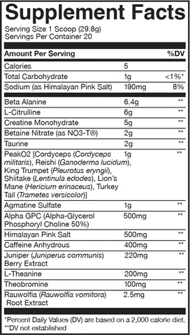 Our formula was engineered with some of the market's most powerful and trusted ingredients like L-Tyrosine, Beta Alanine, Arginine Nitrate, Huperzine A, Alpha GPC, and Bitter Orange. The synergistic effects of these ingredients aid in improved cellular hydration, enhanced mental focus, spiked energy production, optimized blood flow, and amplified fat burning. If you’re looking to buy the best all-in-one pre-workout supplement, you’ve met your match.