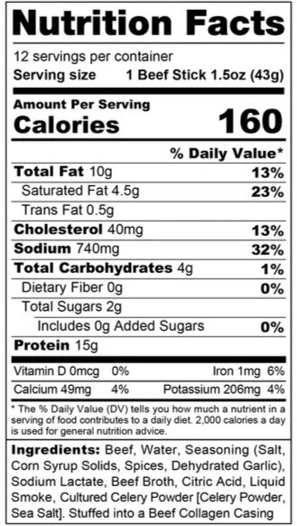 15 GRAMS OF PROTEIN per individually wrapped jerky stick (1.5 oz.) Our delicious, premium jerky sticks offer more protein than many other meat sticks, and a flavor and texture that immediately sets us apart. At 1.5oz per stick, we offer double the protein and more meat than most.